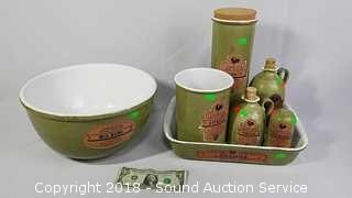 All have original tags. Made in Florence, Italy. Includes: Large 12-1/2" Mixing Bowl, Spaghetti Container, Utensil Container, Lasagna Pan, Parmesan Shaker, Vinegar & Oil Containers.