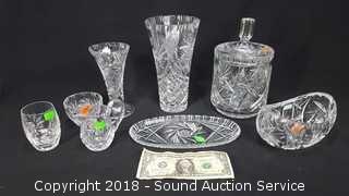 Lot #0418: 9pc. Beautiful Crystal Canister, Vases & More