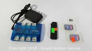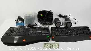 Includes: Microsoft Natural Ergoniomic Keyboard 4000, Microsoft Wireless Comfort Keyboard 5000, elkin N750 DB Wireless N+ Router, 7 Port USB Hub, Scan Disk USB Micro & Mini SD card Reader, Mini & Micro SD Cards & Approx. 75 Blank DVD's.