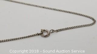 Set in sterling silver. Chain is made of unknown metal. 10 x 8mm Hematite. Chain is approx. 18" L. Pendant is 1/2". ATTN: We are not jewelry experts or appraisers, please use your own judgment when bidding!