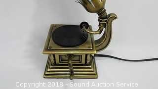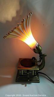 Lot #0104: Glass Shade Phonograph Table Lamp