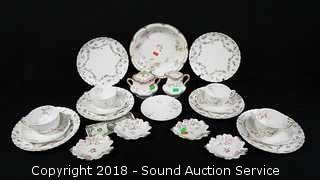 Includes: (6) 7" snack plates, 5 saucers, 4 cups, creamer, sugar, 4 condiment dishes, and 8-1/2" bowl.