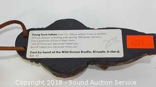 4 leaf clover is encased in glass with aluminum frame. Cong love token is cast by hand, by The Wild Goose Studio. Ashtray is by Carrigaline.