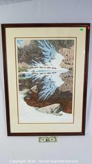 #29,545/36,548. Professionally framed and matted with glass. Approx. 36" x 26-1/2".