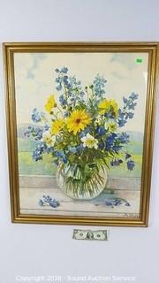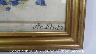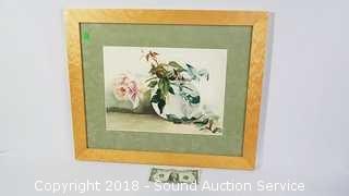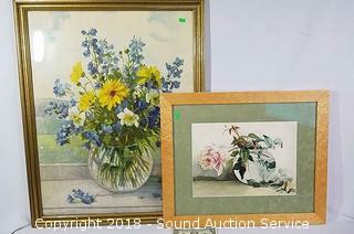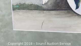 Both are framed with glass. Print is by Artist A.R. Stutz. Approx. 24-1/2" x 31" & 19" x 22-1/2". The original has a couple tears in the paper.