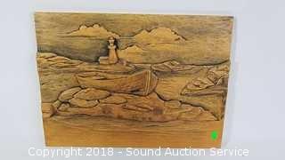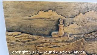 Lot #0352: Tree & Lighthouse Scene Carved Wooden Artwork