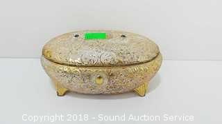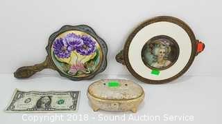 Lot #0132: Vtg. Hand Painted Hand Mirror, Trinket Dish & Tray