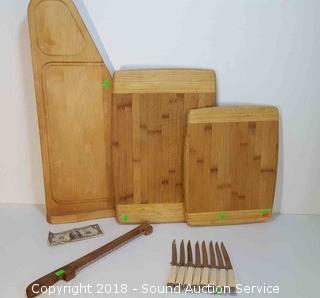 Lot #0430: Wooden Cutting Boards & Cutlery