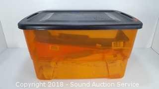 Lot #0027: 40 QT Tote w/Painting Supplies & Telescopic Roller