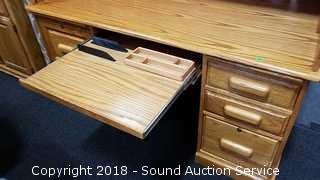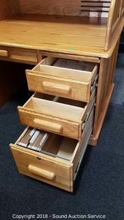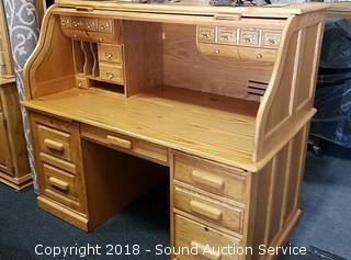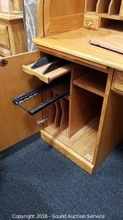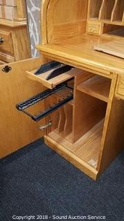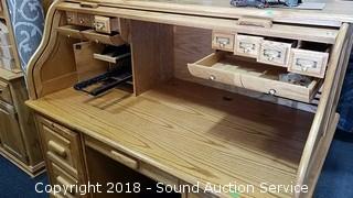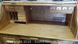 Lot #0001: 60" Golden Oak Roll Top Computer Desk