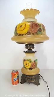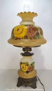 Lot #0003: Vtg. Hand Painted Glass Table Lamp w/Chimney