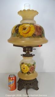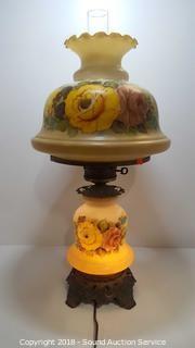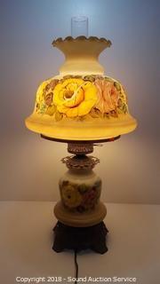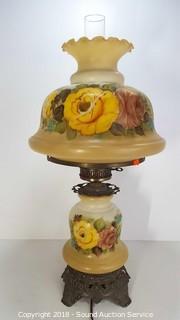 Lot #0004: Vtg. Hand Painted Glass Table Lamp w/Chimney