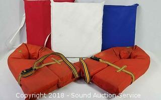 Includes: 2 Life Vests, and 3 Stearns Throwable Flotation Devices.