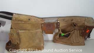 Lot #0121: Carpenters Leather Tool Bag & Various Tools