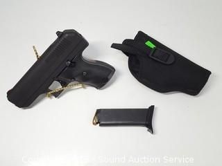 Serial P097454. Model C9. Clip holds 8 rounds. Comes with clip holster. Caliber: 9mm +P; Capacit y: 8-Round Magazine; Action: Double-Action, Semi-Automatic; Frame: High Impact Polymer with Easy-Grip Finish; Barrel: 3.5"; Slide: Black Powder Coated; Slide Holds Open After Last Round Fired; Sights: 3-Dot, Adjustable; Grip: High Impact Polymer with Easy-Grip Finish; Safety: On-Off Thumb Safety; Magazine Disconnect Safety; Overall Length: 6.75"; Weight: 29 oz; Finish: Matte Black. Preview of these items by appointment only. In accordance with U.S. law, this lot must either be picked up at Reaper Industries in Olympia, Washington or shipped to a U.S. licensed firearms dealer (FFL) of the buyer's designation. Handguns will be shipped via USPS Priority Mail; shotguns & rifles will be shipped according to Reaper Industries standards and in accordance with U.S. laws. All shipping and handling charges will be paid by the buyer and billed by Reaper Industries. All transfer fees will be paid by the buyer at Reaper Industries at the price of $30 per item.