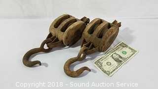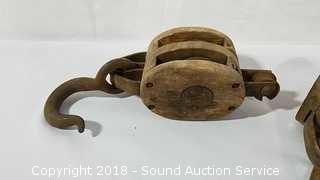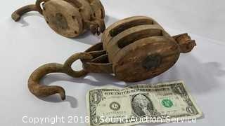 Lot #0295: Pair of Antique Wood Block Pulleys