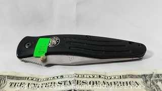 Includes: Schrade Old Timer Knife w/Sheath, Smith & Wessen Cuttin' Horse Folding Pocket Knife w/Pocket Clip, Nicholson Folding Saw. Approx. 17" L, 8" blade.