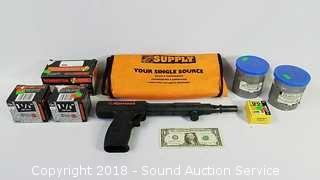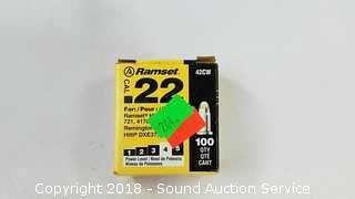 Includes: The Ram Set, 1-1/2", 2", 2-1/2", 3" power fasteners, box of approx. 60 .22cal shots, and carrying bag.