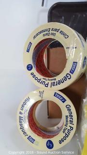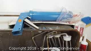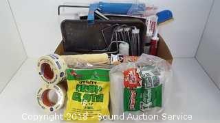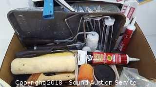 Includes: Masking Tape, Rollers, Paint Brushes, Plastic Drop Cloths, Caulk Gun, and more.