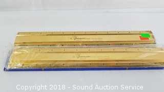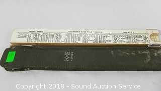Includes: Dietzgen 1950 Slide Rule w/Leather Case, Keuffel & Esser Slide Rule, Lightning Picture, and 2 Brass Paramount 12" Rulers.