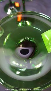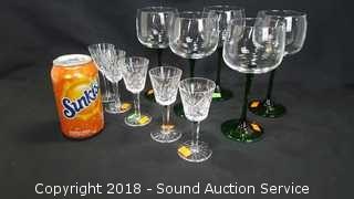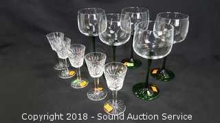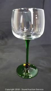 Lot #0074: 10 Crystal & Green Glass Stemware