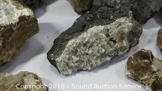 This auction is made up of a variety of Minerals, Primitive, Rustic & Elegant items. Including but not limited too; Obsidian, Hematite, Natrolite, Petrified Wood, Fossils, Carnelian Agates, Stilbite, Coprolite, Waterford Crystal, Horse Tack, Art Glass, Fine China, Literature, 1/2 Carat Diamond Earrings, Fishing & Much More!