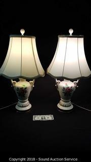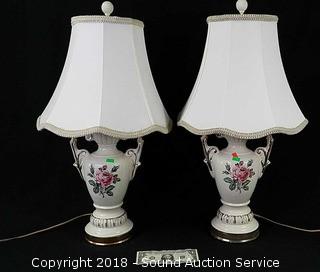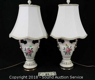Lot #0190: 2 Ornate Vtg. Porcelain Table Lamps