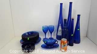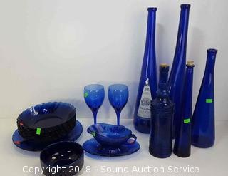 Lot #0124: 20pc. Cobalt Blue Glassware