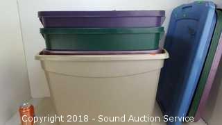 Lot #0150: (3) 14 Gal Rubbermaid Totes & 18 Gal Sterilite Tote