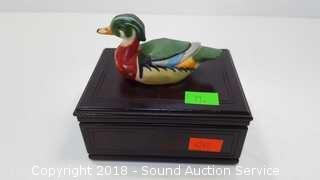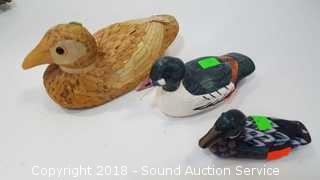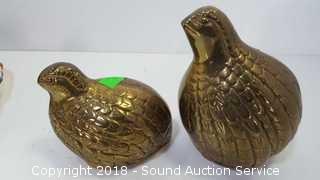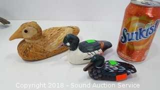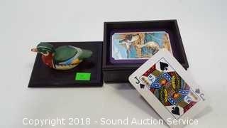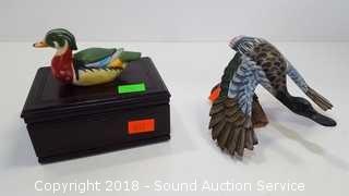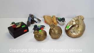 Includes: 2 Brass Pheasants, Syroco Composite Golden Duck, Wood Hand Painted Ducks, Weiss Hand Painted Ceramic Duck, Corn Husk Duck, and Duck Cards w/Box.