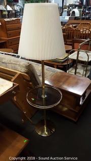 Lot #0266: Brass & Glass Floor Lamp/Side Table