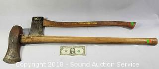 Lot #0230: Nice Plum Splitting Axe & Splitting Maul