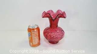 Lot #0011: Signed Dave Fetty Pink Fenton Ruffled Edge Vase
