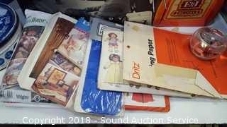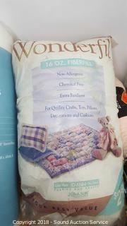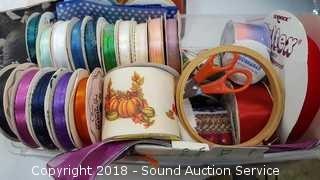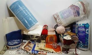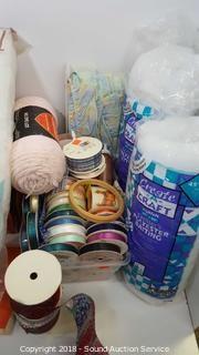 Includes: Various Ribbons, Fabric, Fabric Glue, Crafting Patterns, Batting, Yarn, and more.