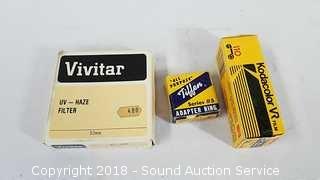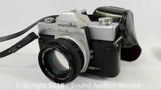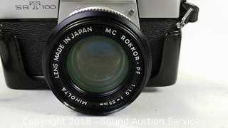 Includes; Minolta SRT100, Minolta f=55mm 1:19 Lens, Vivitar Telephoto 135mm1:2.8 No.3704883 Lens, Agfatronic 160a Flash, Exposure Meter, Some sort of Germany Lens, Film, Haze Filter & Nice Embossed Leather Bag.