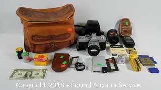 Lot #0153: Vtg. Camera Equipment w/Nice Leather Bag