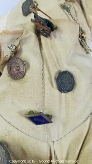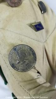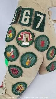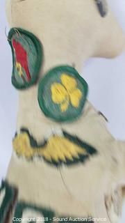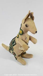 Books is titled "You're Only Old Once". Kangaroo is 13" tall. Looks to be covered in merit badge patches.
