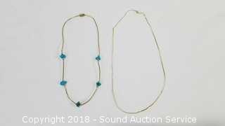 Approx. 14" & 17" long. TW: 6.2g. The one without the turquoise has a few kinks in the chain.