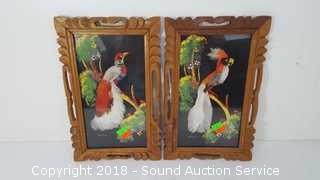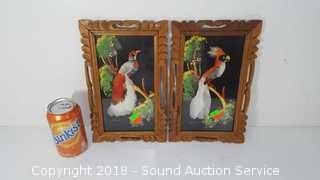 Lot #0007: 2 Framed Mexican Feathercraft Bird Artwork