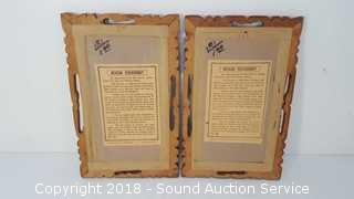 Has information card on the back. Framed look to be handmade from wood. Approx. 7" x 10-1/2".