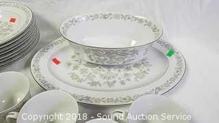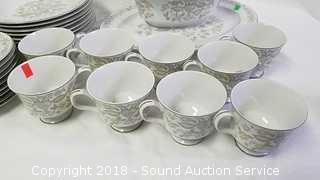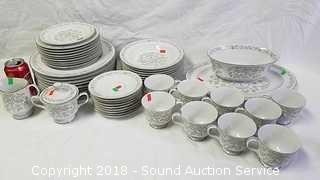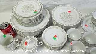 Includes: (11) 10-1/2" Dinner Plates (One has a chip), (9) 7-1/2" Lunch Plates, 6-1/2" Snack Plate, 9 Teacups, 9 Saucers, 14" Platter, 9" Oval Serving Bowl, Cream, Sugar, and (8) 8-1/2" Soup Bowls.