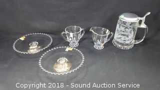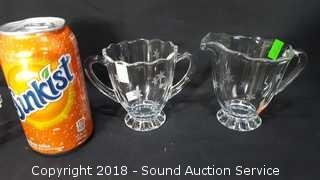 Lot #0035: Etched Cream, Sugar, Mug & Sterling Base Dishes