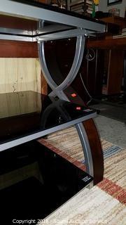 3 Glass Top Shelves, Flat Screen Mount (holds Up To 135lbs). Approx. 48" H, 54" W, 18" D.