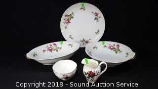Includes: Royal Albert Cream & Sugar, Sango Moss Rose 8" & 10" Serving Bowls, and 10" Charger.