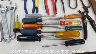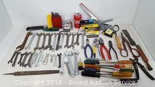 Includes: Plyers, Adjustable Wrenches, Open & Box End Wrenches, Wire Cutters, Tape Measure, and more.