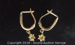 Earrings are approx. 1" and 1/4" star encrusted with 7 small diamonds. Total weight: 1.4 grams. ATTN: We are not jewelry experts or appraisers, please use your own judgement when bidding.
