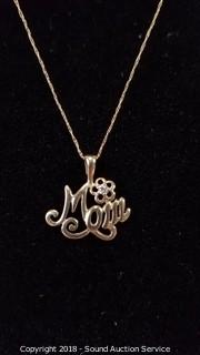 Lot #0188: 10K Gold "Mom" Pendant Necklace