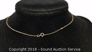 Petite chain, 18" L, does have a small knot. Pendant has clear gemstone setting. Total weight: 1.2 grams. ATTN: We are not jewelry experts or appraisers, please use your own judgement when bidding.
