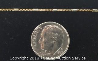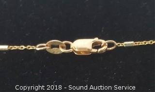 Chain link with cylinder gold beads. Approx. 20" L. Total weight: 2.5 grams. ATTN: We are not jewelry experts or appraisers, please use your own judgement when bidding.