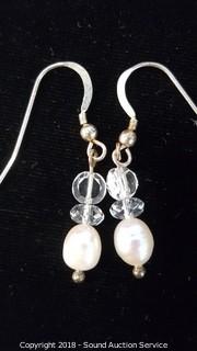 Lot #0054: 2 Pairs of Sterling Crystal & Pearl Earrings
